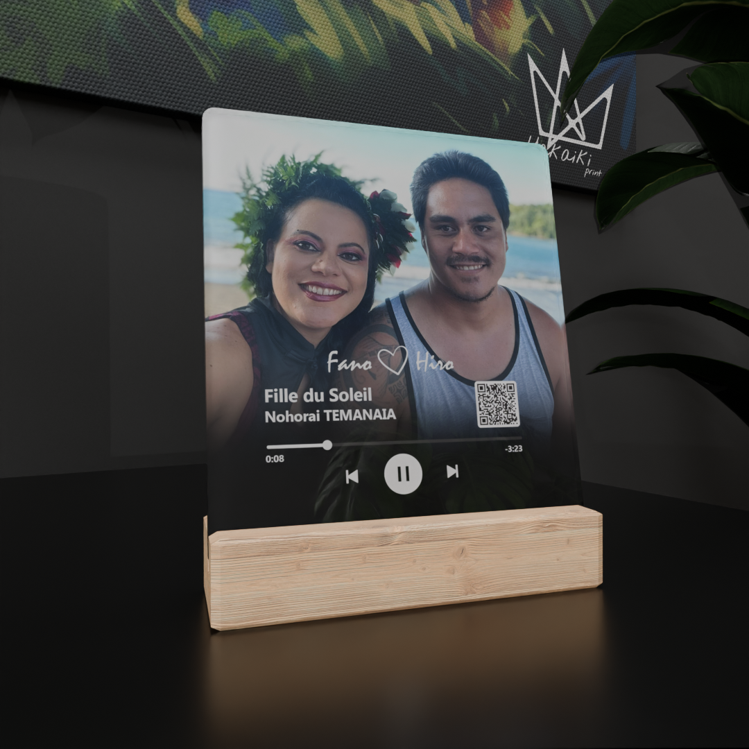 Ce cadre personnalisé unique associe votre photo préférée à la chanson qui symbolise votre amour. Grâce au QR code intégré, scannez et écoutez instantanément la musique qui accompagne votre histoire.