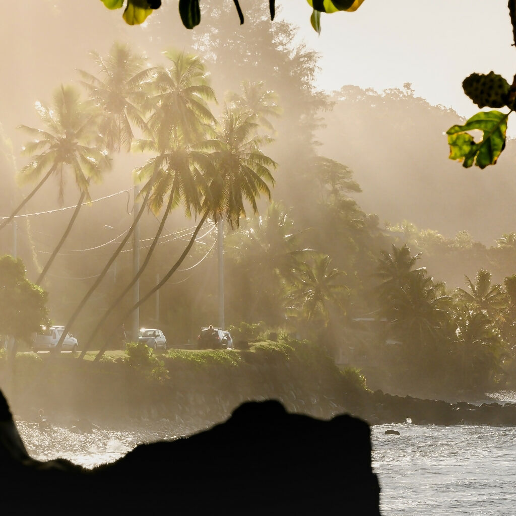 I captured this shot with intention, at the moment when the last rays of the setting sun kissed the iconic coconut trees of Orofara in the commune of Mahina. The window framed through the trees gives it a picture-like quality, like a piece of art decorating a living room, preserving the memory of our beautiful landscapes. ✨